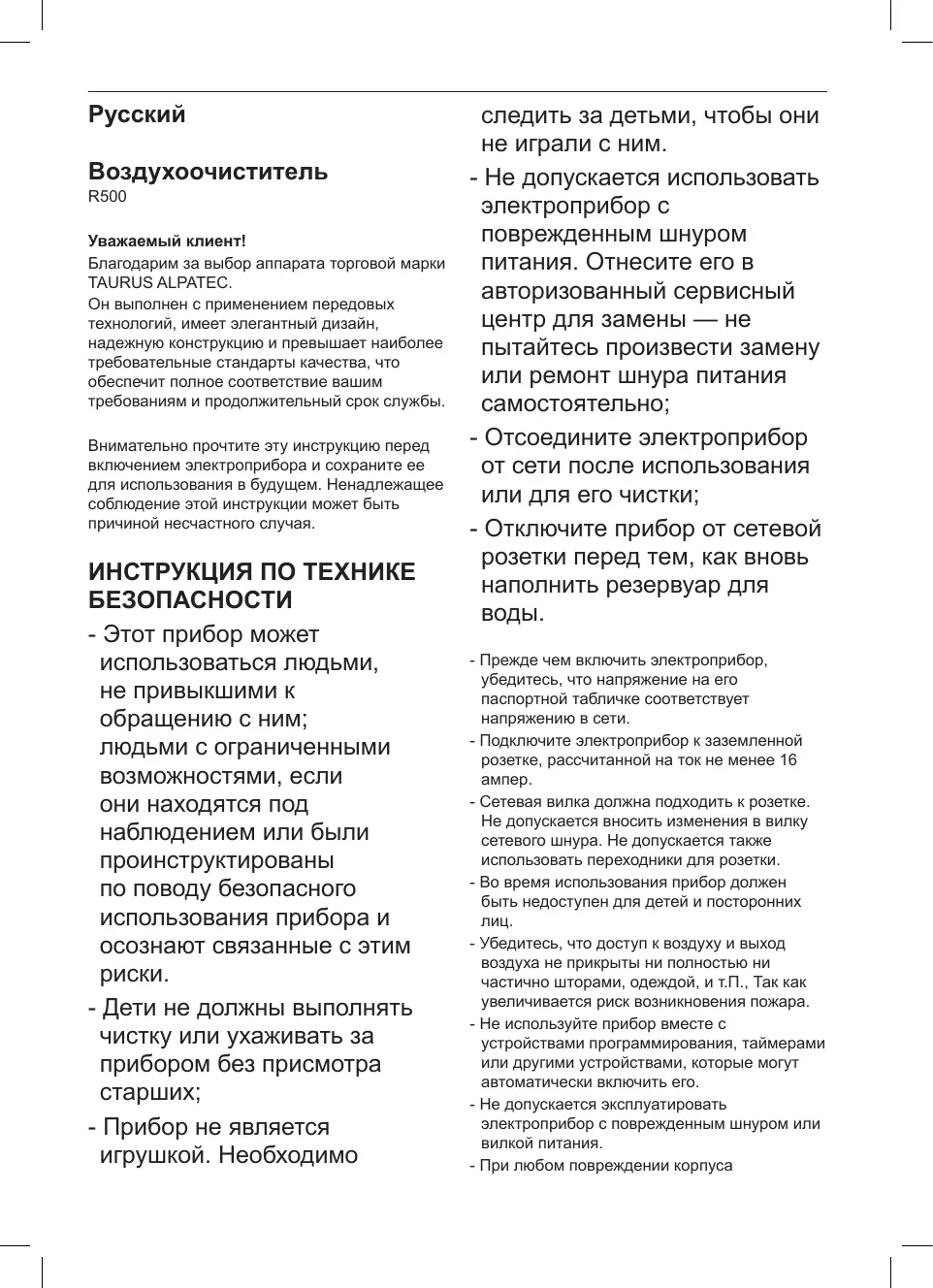 РУКОВОДСТВО ПОЛЬЗОВАТЕЛЯ HOME AC 3100 TAURUS