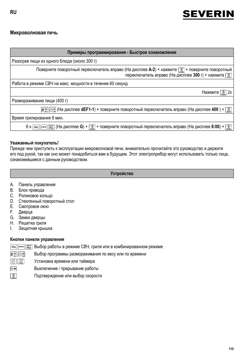 RU Руководство по эксплуатации Микроволновая печь