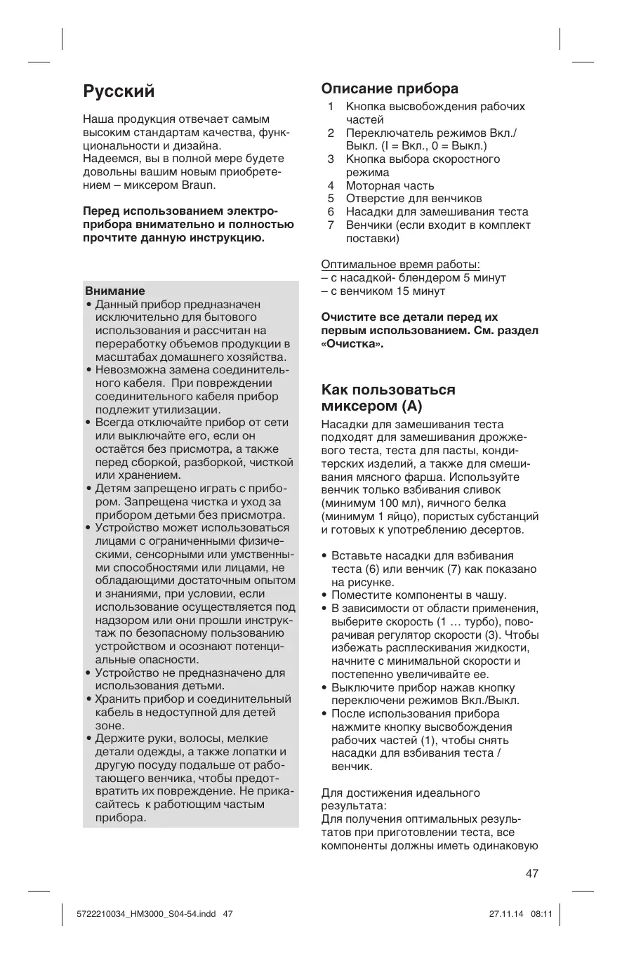 HM3135WH - миксер BRAUN - Бесплатное руководство пользователя