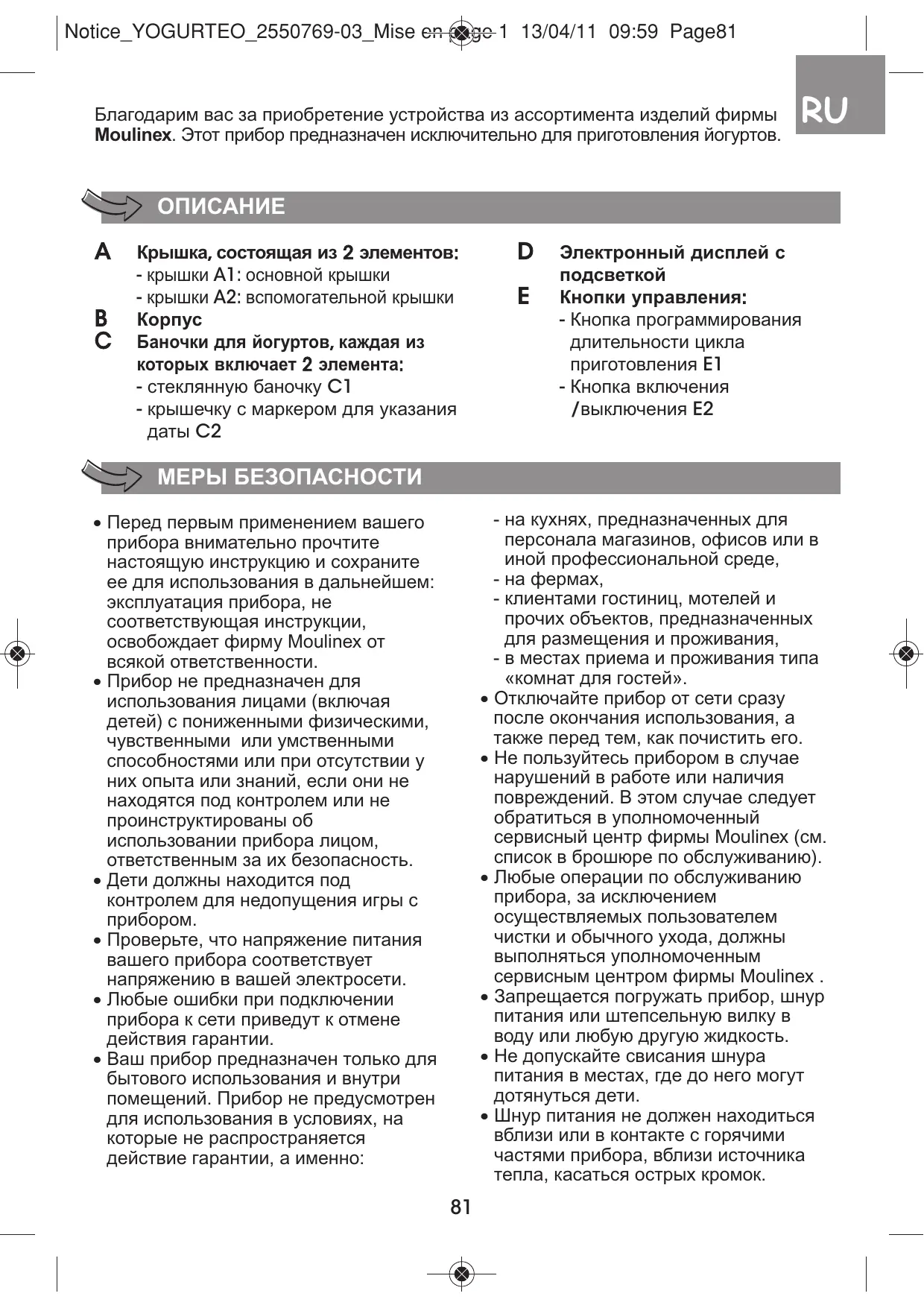 Найдите руководство к устройству бесплатно YG231E32 MOULINEX в формате PDF.