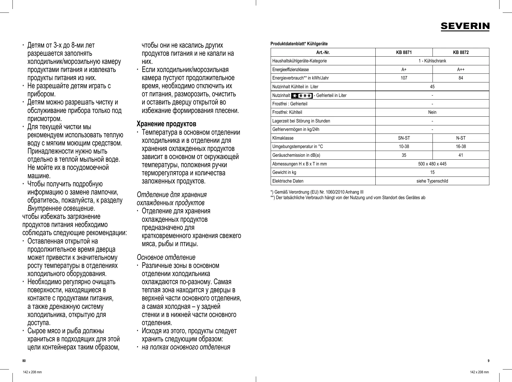 РУКОВОДСТВО ПОЛЬЗОВАТЕЛЯ KB 8872 SEVERIN