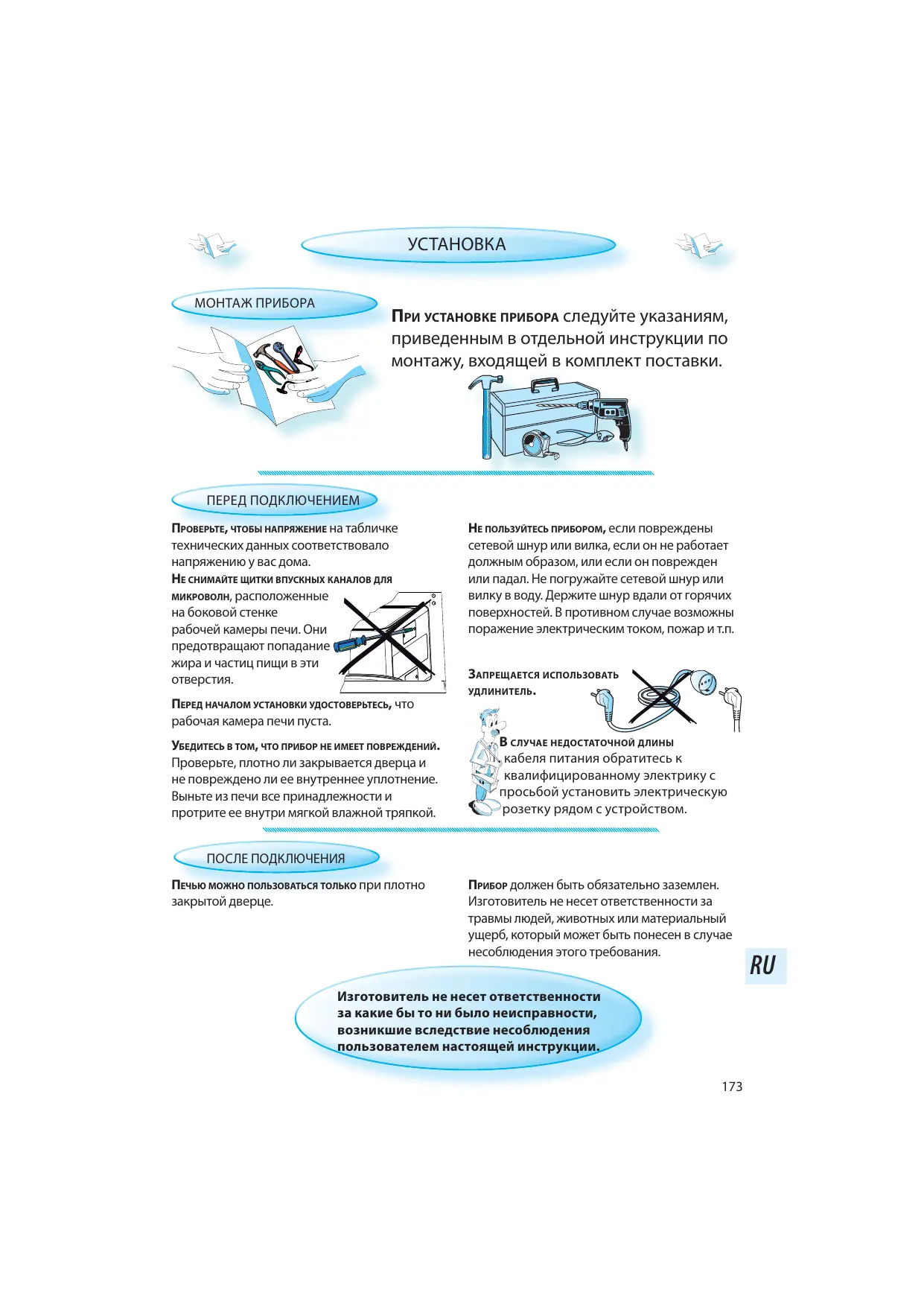 APRÈS LE BRANCHEMENT DE L'APPAREIL LE FOUR NE PEUT ÊTRE UTILISÉ QUE si la porte est correctement fermée.