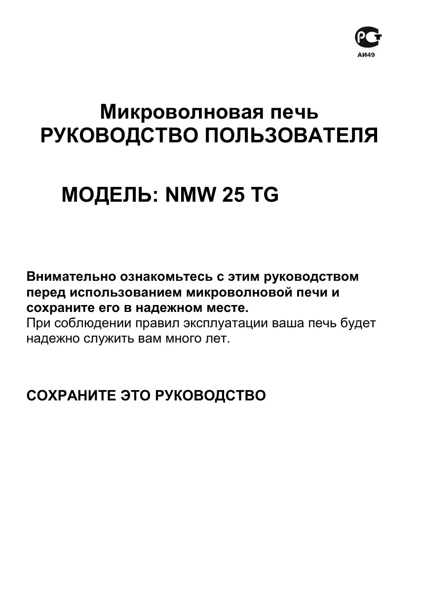 РУКОВОДСТВО ПОЛЬЗОВАТЕЛЯ NMW 25 D NODOR