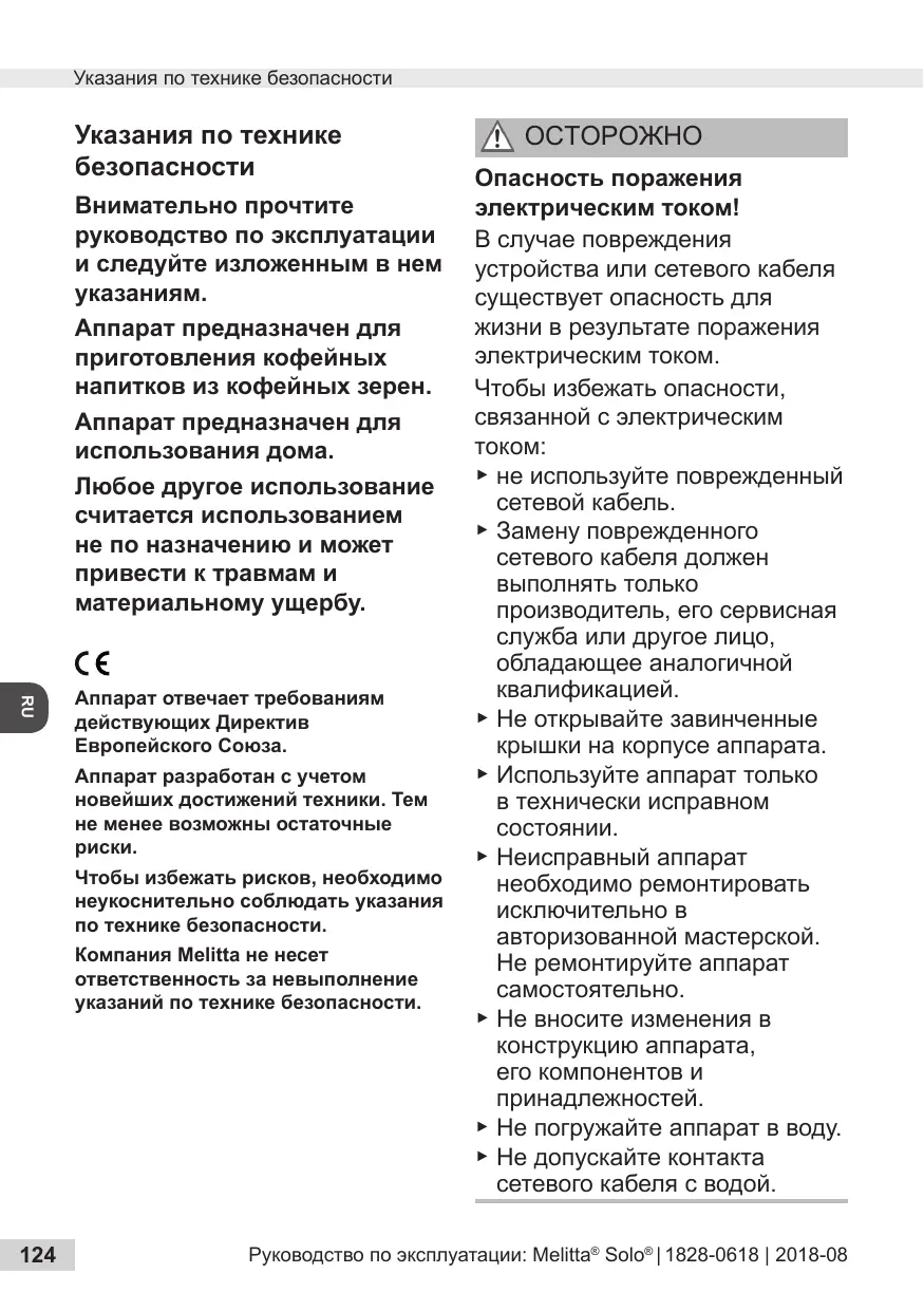 РУКОВОДСТВО ПОЛЬЗОВАТЕЛЯ SOLO MELITTA