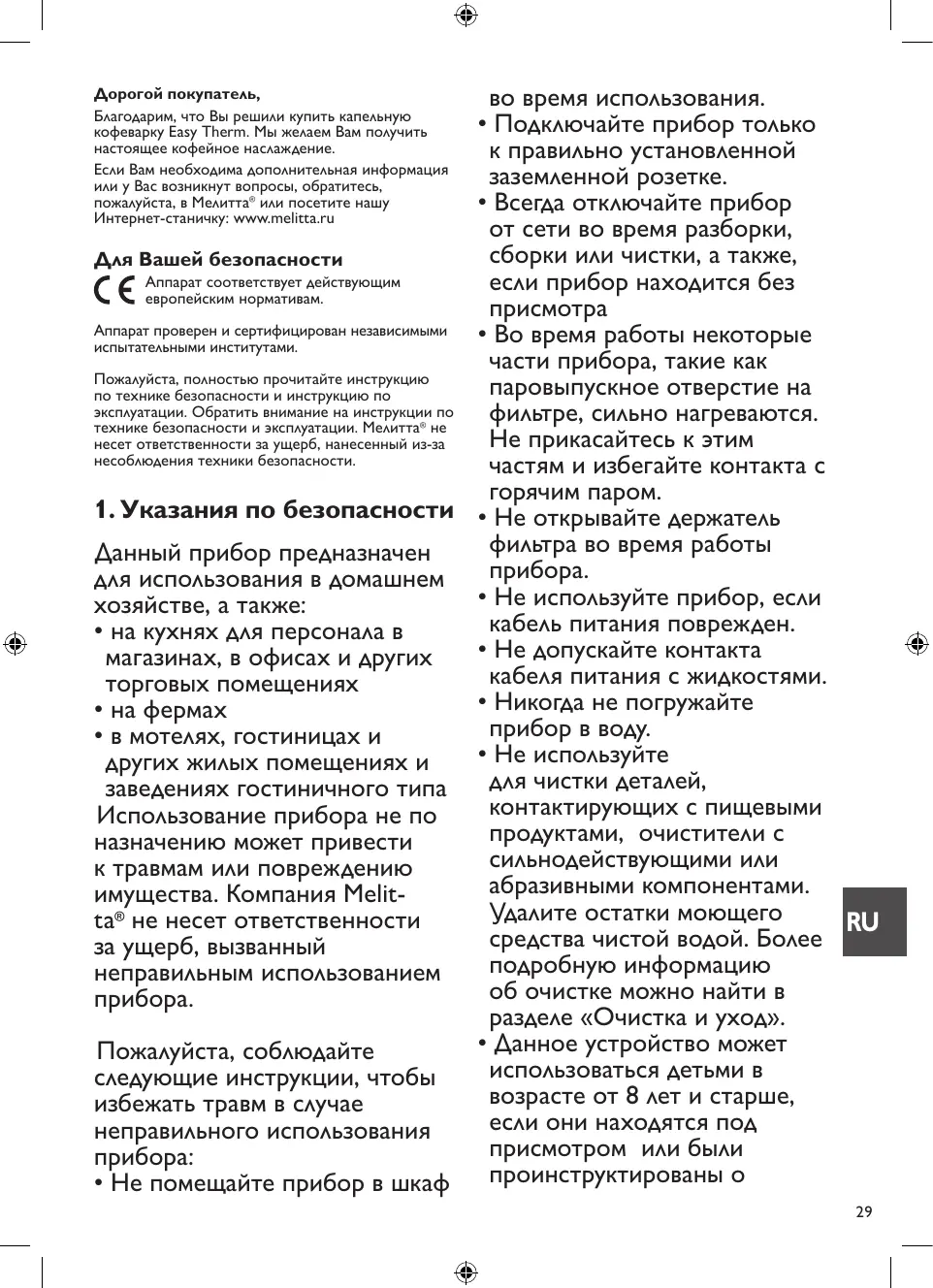 РУКОВОДСТВО ПОЛЬЗОВАТЕЛЯ EASY THERM +2ND COFFEE POT MELITTA