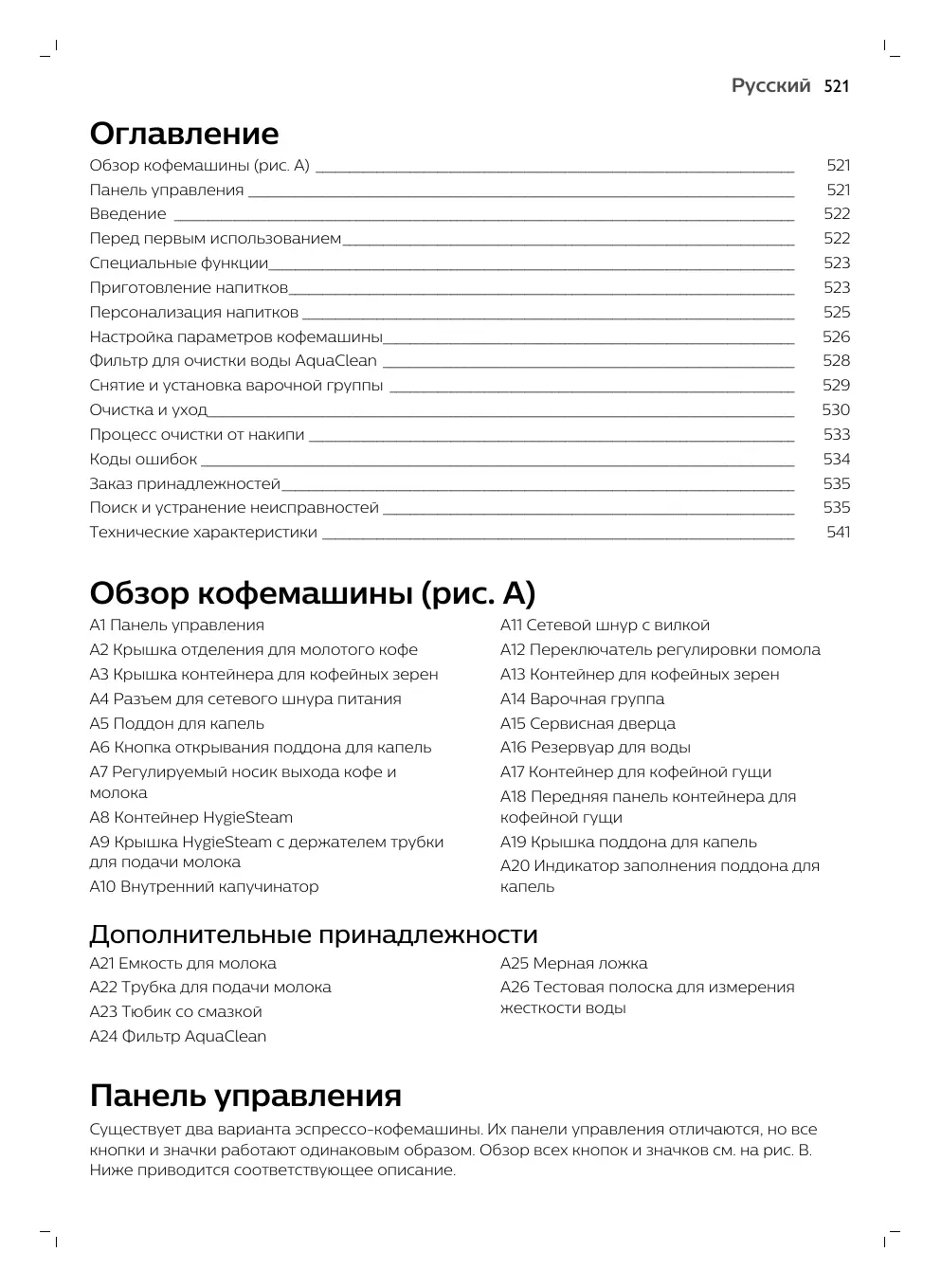 Оглавление Обзор кофемашины (рис. A) _______________________________________________________________________
