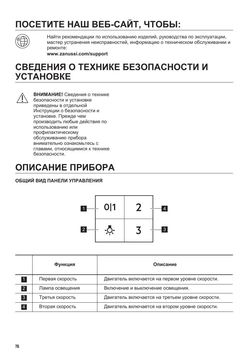 ПОСЕТИТЕ НАШ ВЕБ-САЙТ, ЧТОБЫ: Найти рекомендации по использованию изделий, руководства по эксплуатации, мастер устранения неисправностей, информацию о техническом обслуживании и ремонте: www.zanussi.com/support