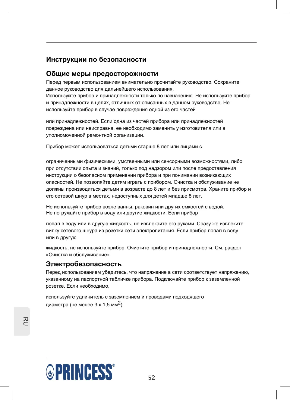 РУКОВОДСТВО ПОЛЬЗОВАТЕЛЯ 112373 - 01.112373.01.001 - 8712836318854 PRINCESS