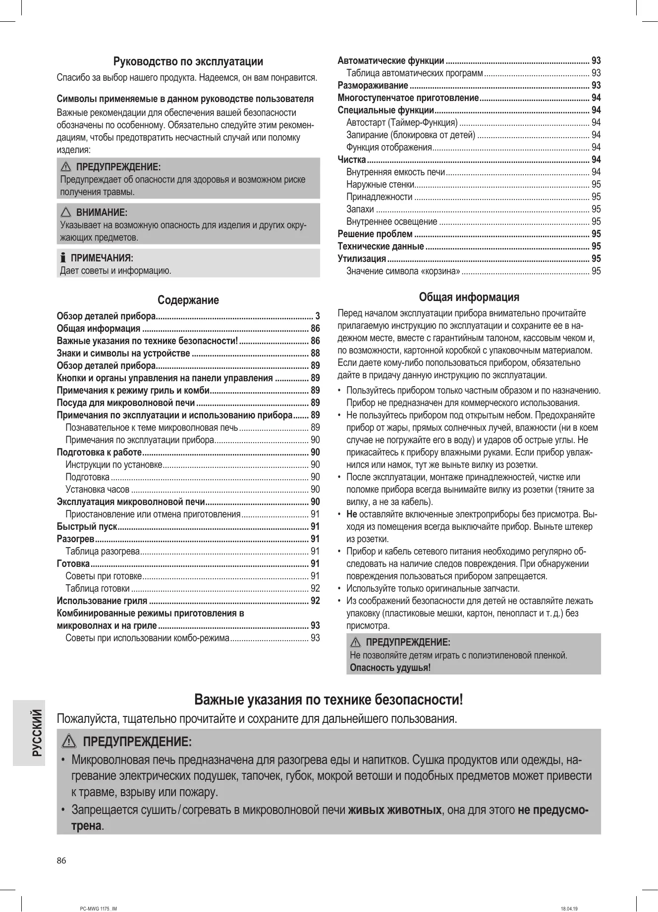 РУКОВОДСТВО ПОЛЬЗОВАТЕЛЯ PC-MWG1175 PROFICOOK