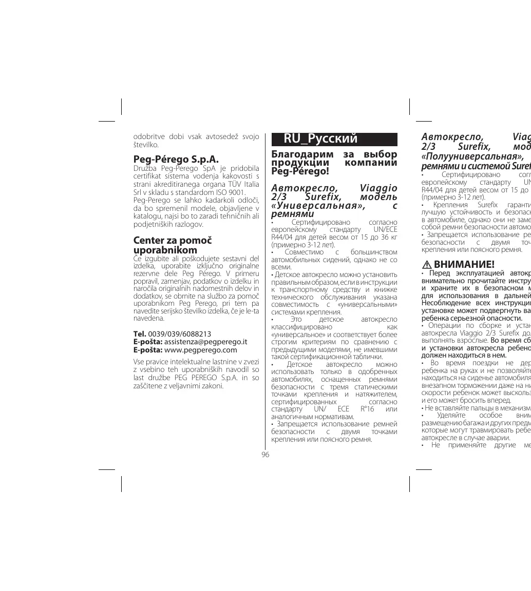 РУКОВОДСТВО ПОЛЬЗОВАТЕЛЯ VIAGGIO CONVERTIBLE PEG PEREGO