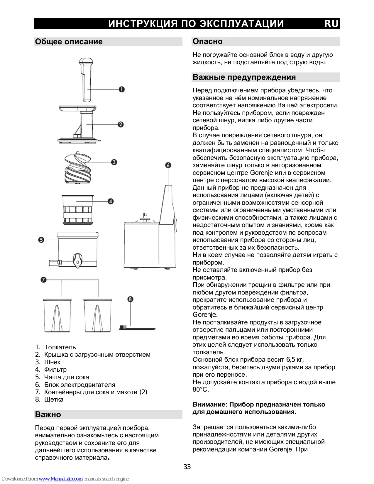 Найдите руководство к устройству бесплатно JC4800VWY GORENJE в формате PDF.