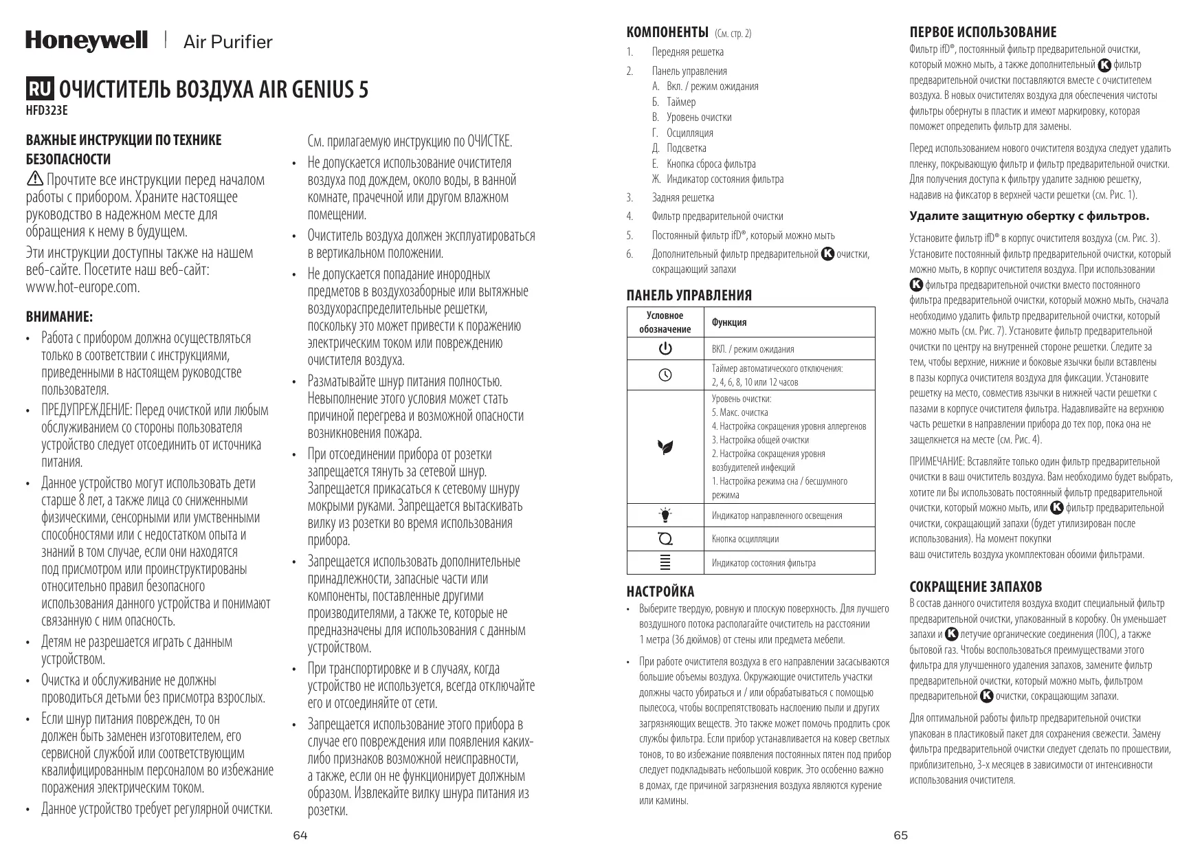 РУКОВОДСТВО ПОЛЬЗОВАТЕЛЯ DW-215E HONEYWELL