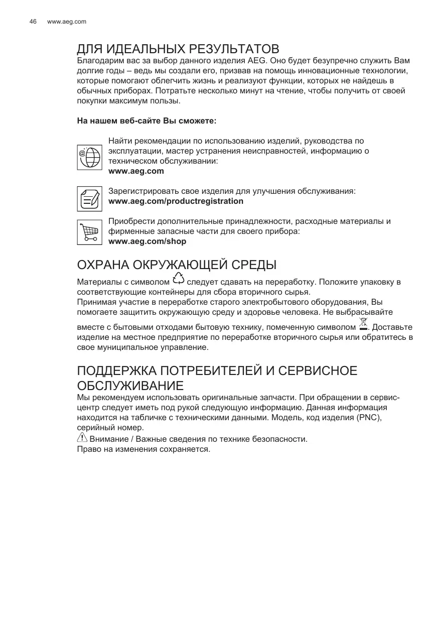 Приоб畴стд ДОЛНпеловны пинадлжноctи, расхонье MaTeрnaы n фирмение заразд Свору пибopa: www.aeg.com/shop