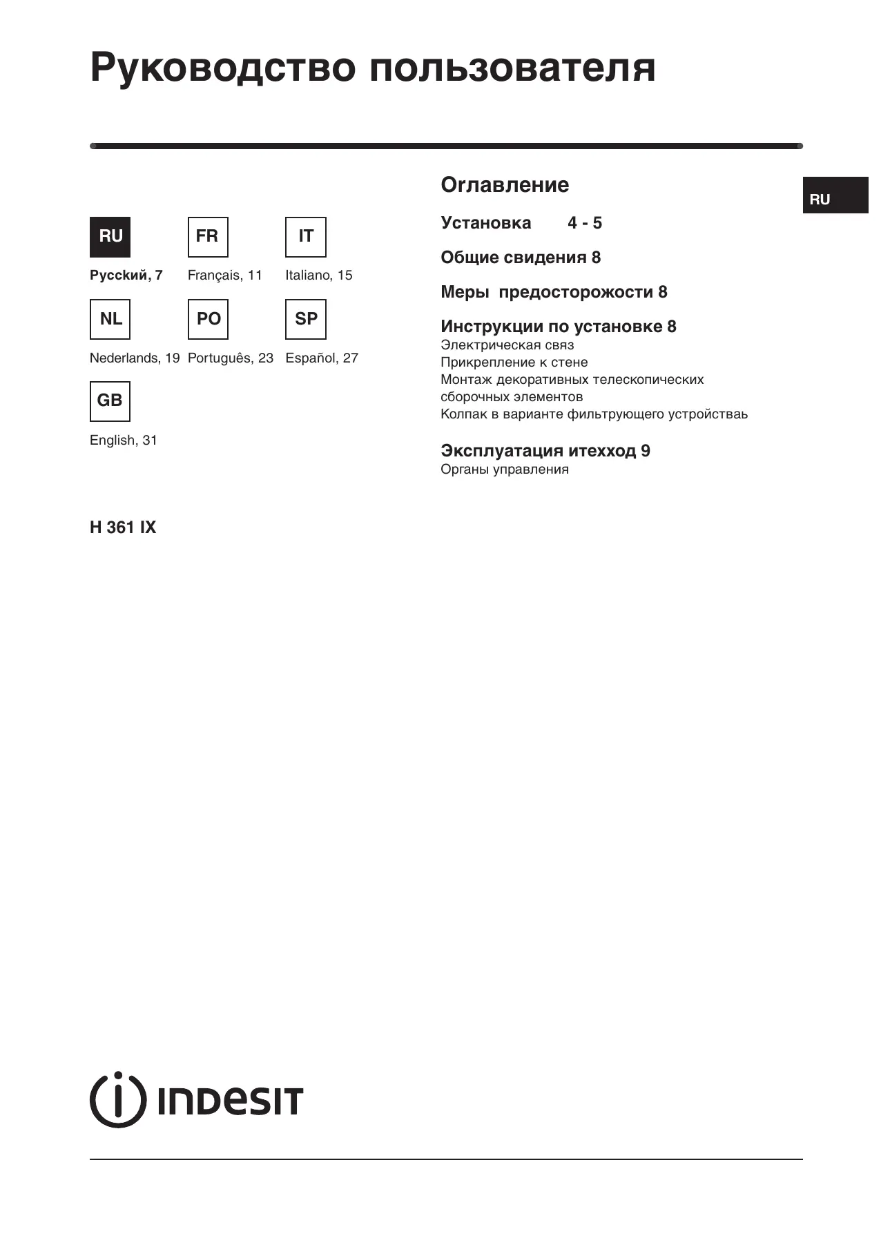Скачайте инструкцию для вашего в формате PDF бесплатно! Найдите своё руководство HIT761IX - INDESIT и возьмите своё электронное устройство обратно в руки. На этой странице опубликованы все документы, необходимые для использования вашего устройства. HIT761IX бренда INDESIT.