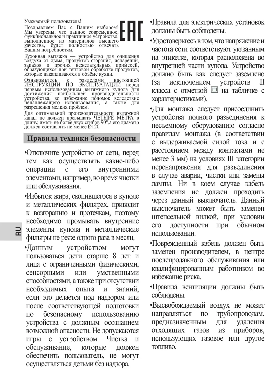 •Votre hotte est destinée à un usage domestique et uniquement pour l’extraction et la purification des gaz en provenance de la préparation d’aliments. Une utilisation différente pourrait être dangereuse et vous en serez totalement responsable.