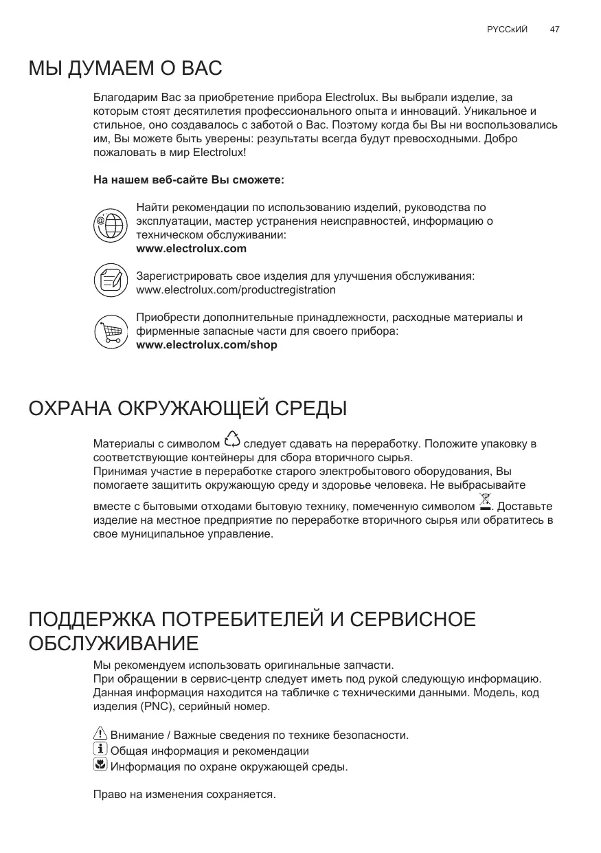 Скачайте инструкцию для вашего в формате PDF бесплатно! Найдите своё руководство EFB60460OX - ELECTROLUX и возьмите своё электронное устройство обратно в руки. На этой странице опубликованы все документы, необходимые для использования вашего устройства. EFB60460OX бренда ELECTROLUX.
