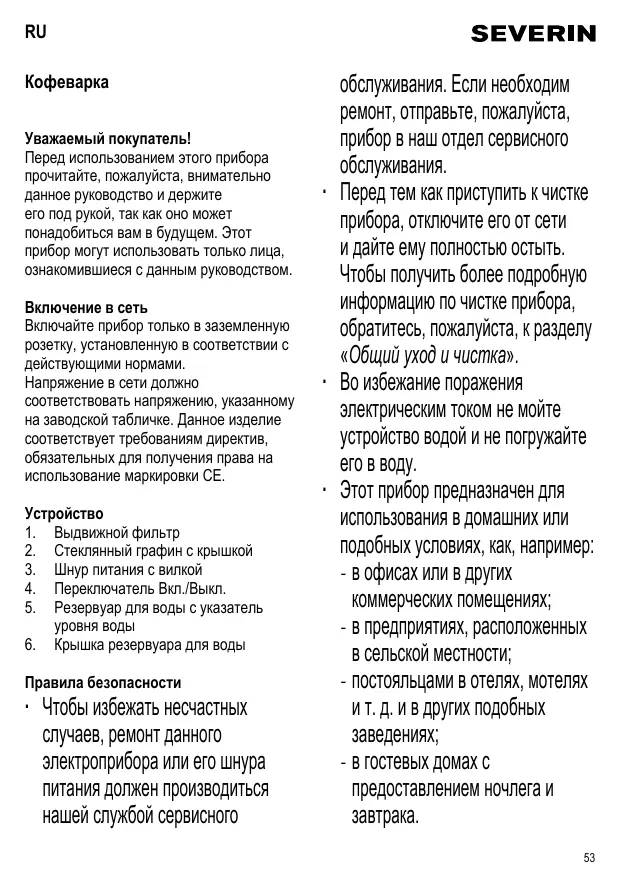 РУКОВОДСТВО ПОЛЬЗОВАТЕЛЯ KA 4487 SEVERIN