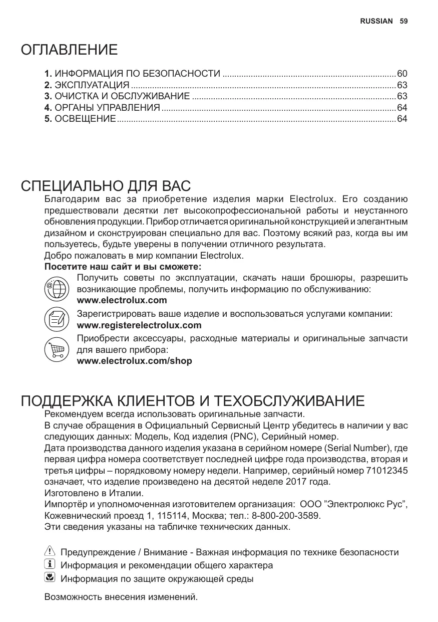 РУКОВОДСТВО ПОЛЬЗОВАТЕЛЯ EFT719X ELECTROLUX
