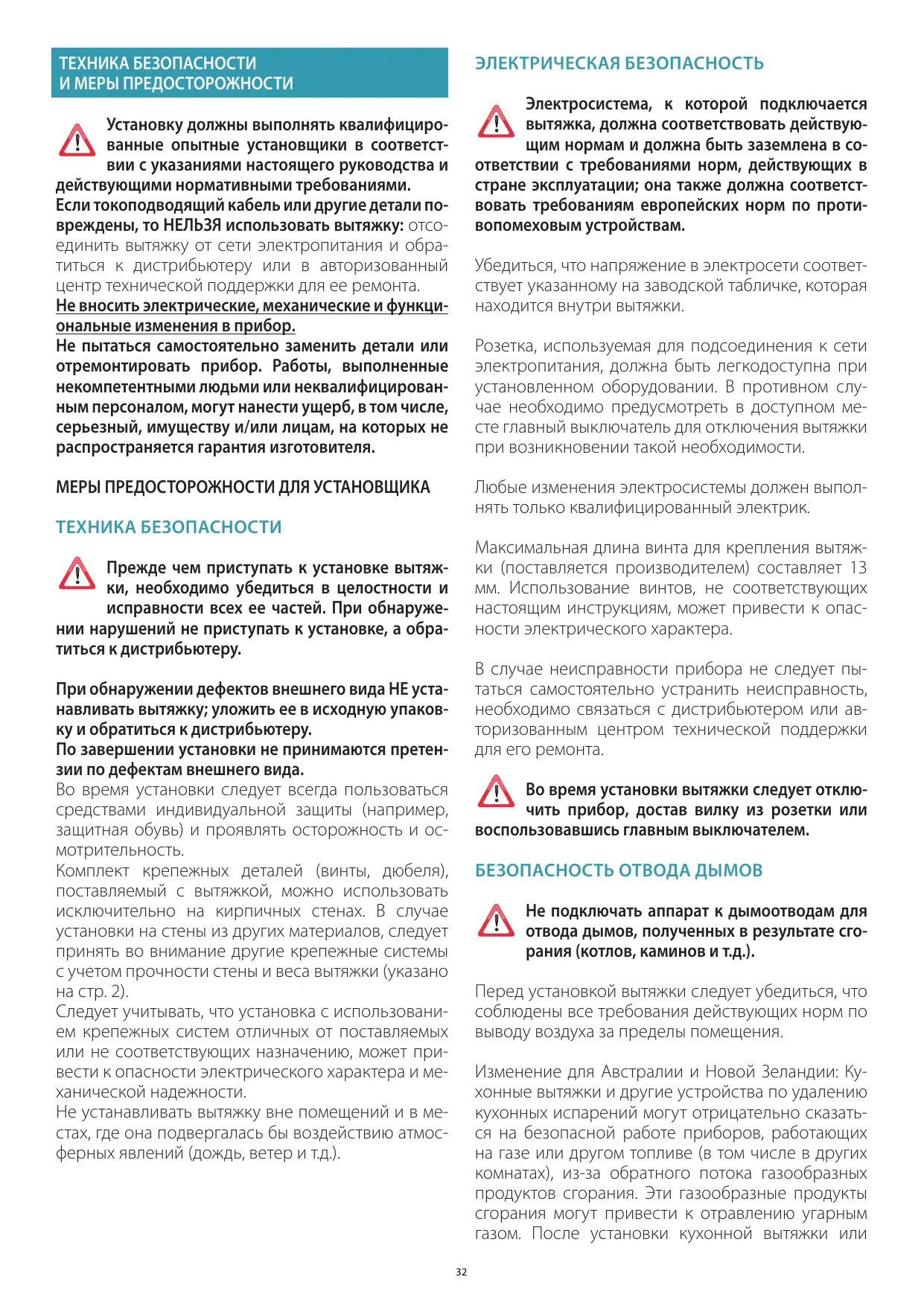 Avant d’effectuer l'installation de la hotte, lire attentivement le chap. « CONSIGNES DE SÉCURITÉ ET MISES EN GARDE ».