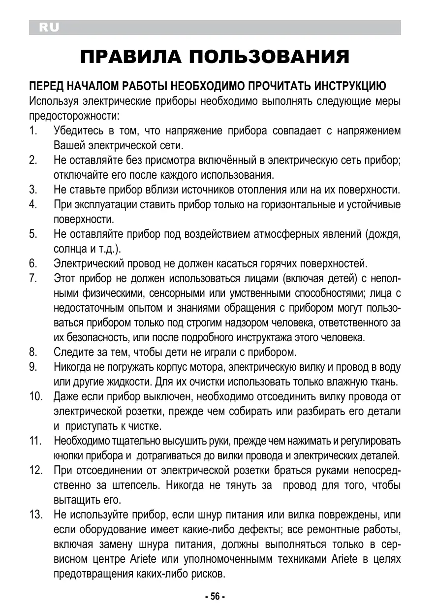 РУКОВОДСТВО ПОЛЬЗОВАТЕЛЯ 1597 - 00C159700AR0 - 00C159700AR ARIETE