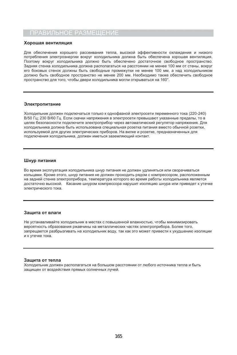 Le réfrigérateur ne doit pas être directement exposé à une source de chaleur et aux rayons du soleil.