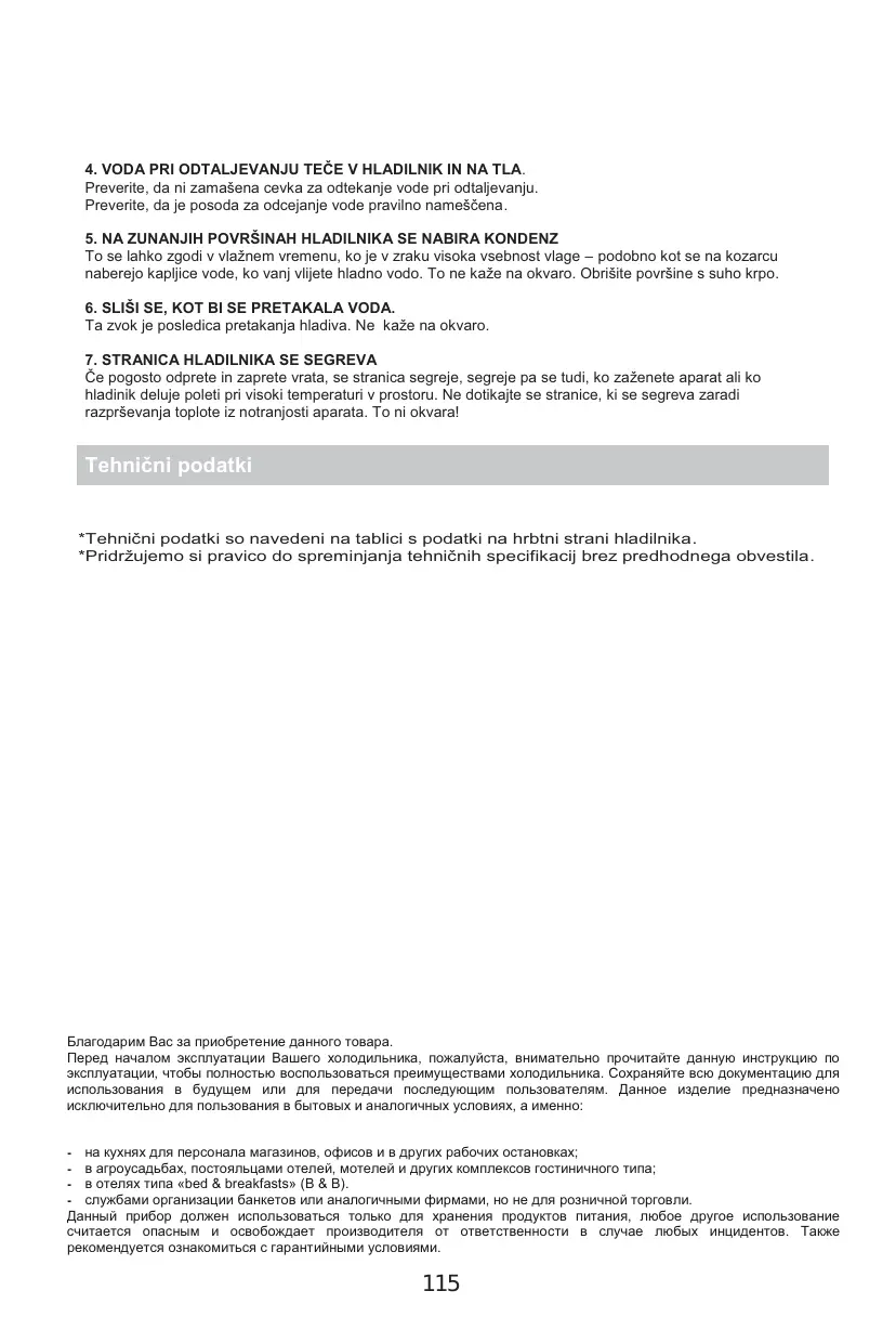 4. Als het dooiwater overloopt in de koelkast en op de vloer. Controleer of de afvoerleiding en de afvoerslang niet verstopt zitten. Controleer of de afvoerbak goed staat. 5. Als er condens wordt gevormd op de buitenkant van de koelkast. Er kan condens ontstaan op de buitenkant als er veel vocht is, zoals in een tijd met veel regen. Dit is hetzelfde als de condens die wordt gevormd als er koud water in een glas wordt gegoten. Dit betekent dus niet dat er een storing is. Veeg het weg met een droge doek.