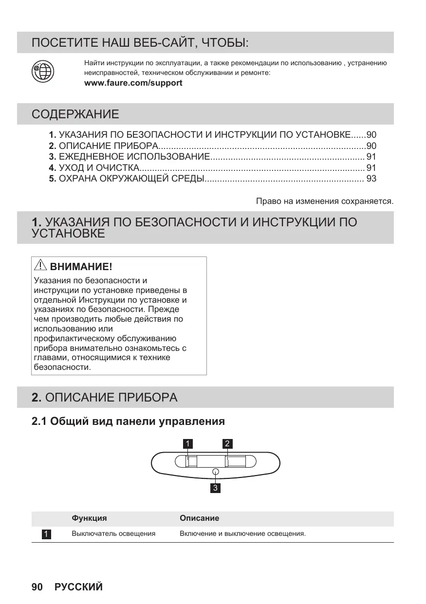 РУКОВОДСТВО ПОЛЬЗОВАТЕЛЯ FFG325S FAURE