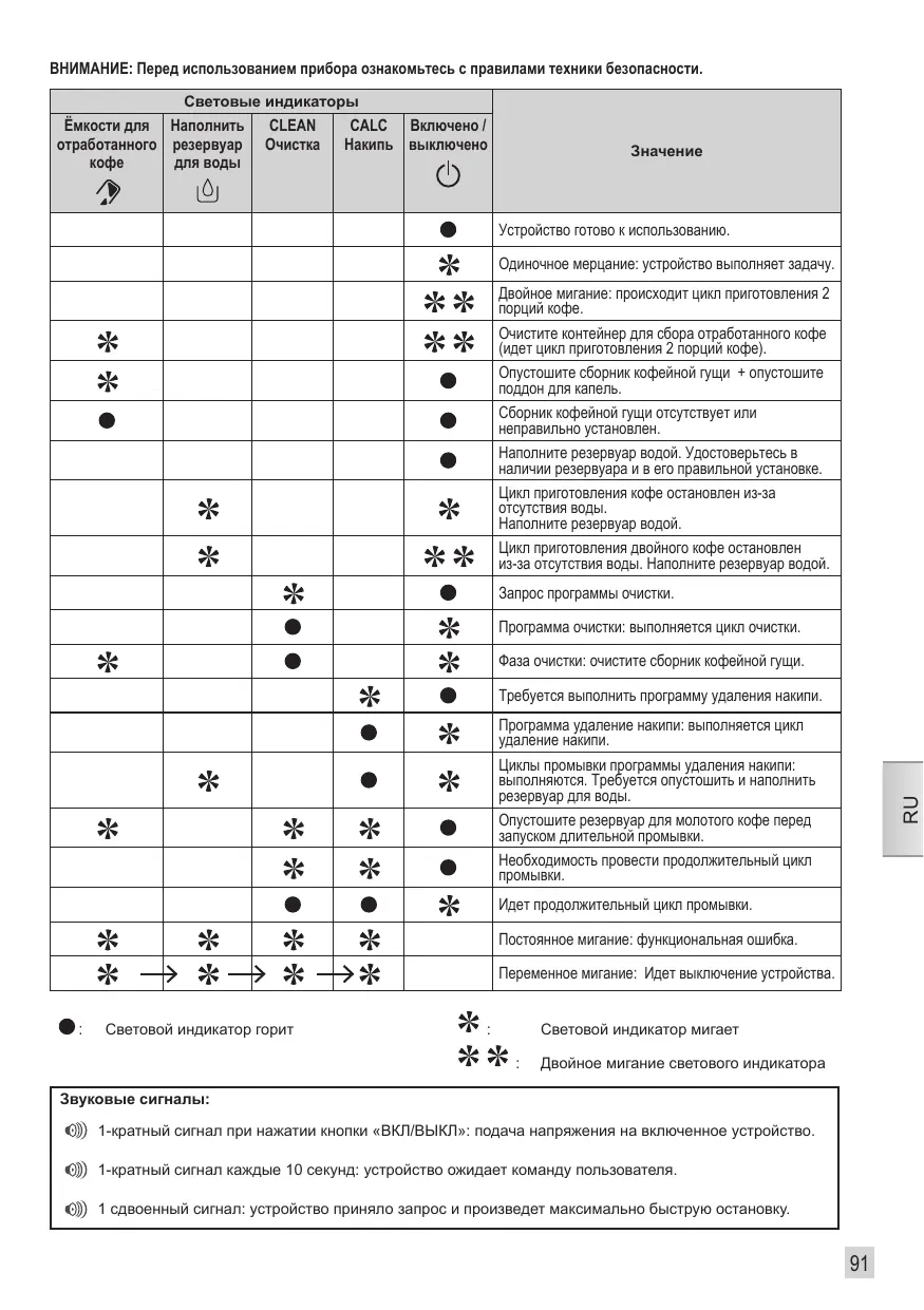 Lorsqu’il est nécessaire de procéder à un rinçage long, l’appareil vous en avertit par le clignotement des témoins lumineux « CLEAN » et « CALC ».