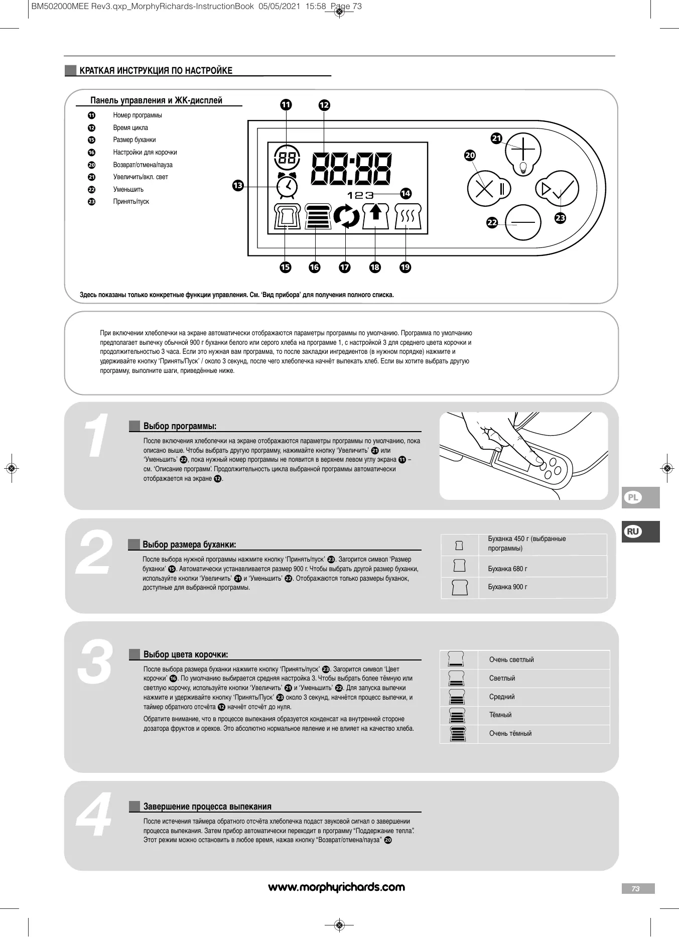 РУКОВОДСТВО ПОЛЬЗОВАТЕЛЯ PREMIUM PLUS 239474 MORPHY RICHARDS