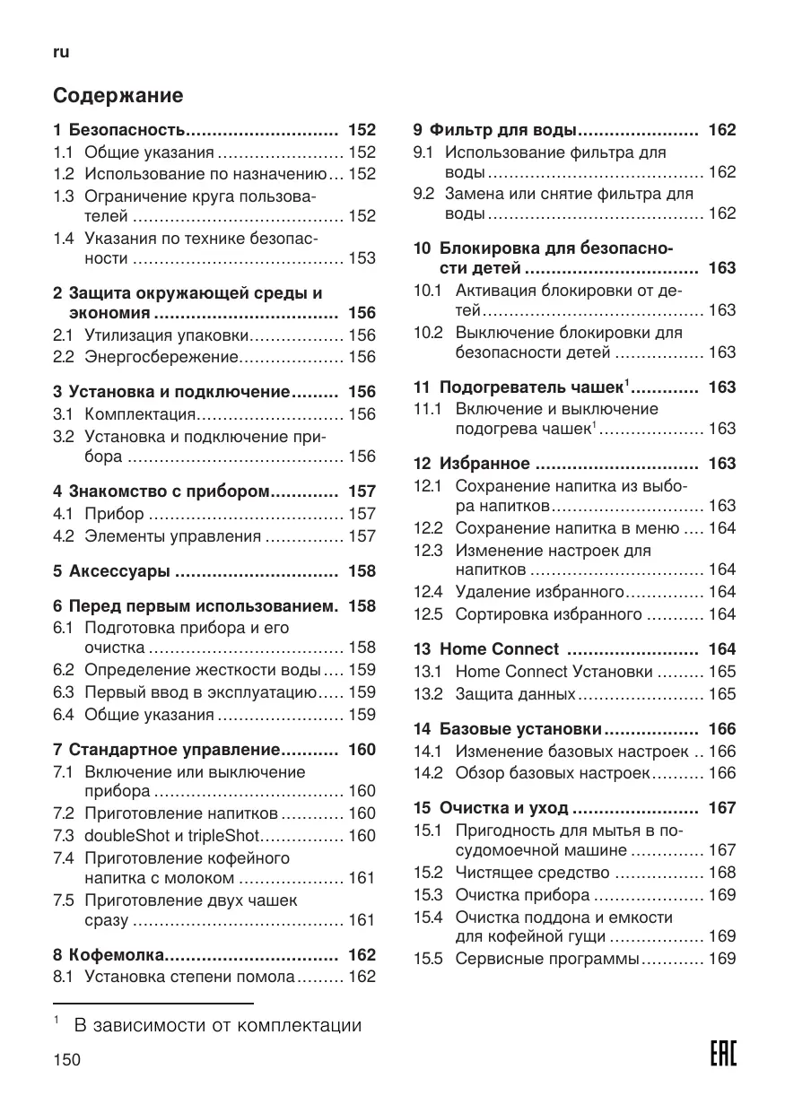 9.1 Mettre en place le filtre à eau 45 9.2 Changer ou retirer le filtre à eau 46 10 Sécurité enfants 46 10.1 Activer la sécurité enfants 46 10.2 Désactiver la sécurité enfants 46 11 Chauffage pour tasses1 46 11.1 Activer et désactiver le chauffe-tasses1 46 12 Favoris 47 12.1 Enregistrer une boisson à partir de la sélection des boissons 47 12.2 Enregistrer la boisson dans le menu 47 12.3 Modifier les réglages des boissons 47 12.4 Effacer un favori 47 12.5 Trier les favoris 47 13 Home Connect 47 13.1 Réglages Home Connect 48 13.2 Protection des données 49 14 Réglages de base 49 14.1 Modifier les réglages de base 49 14.2 Aperçu des réglages de base 49 15 Nettoyage et entretien 51 15.1 Nettoyage au lave-vaisselle.... 51 15.2 Produits de nettoyage 51 15.3 Nettoyer l'appareil 52