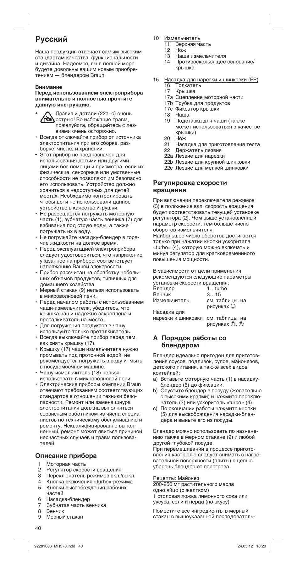 MULTIQUICK 5 MR 570 - Погружной блендер BRAUN - Бесплатное руководство пользователя