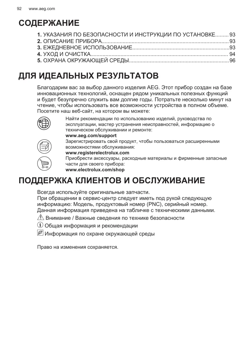 Enregistrer votre produit pour un meilleur service : www.registeraeg.com Acheter des accessoires, consommables et pièces de rechange d’origine pour votre appareil : www.aeg.com/shop