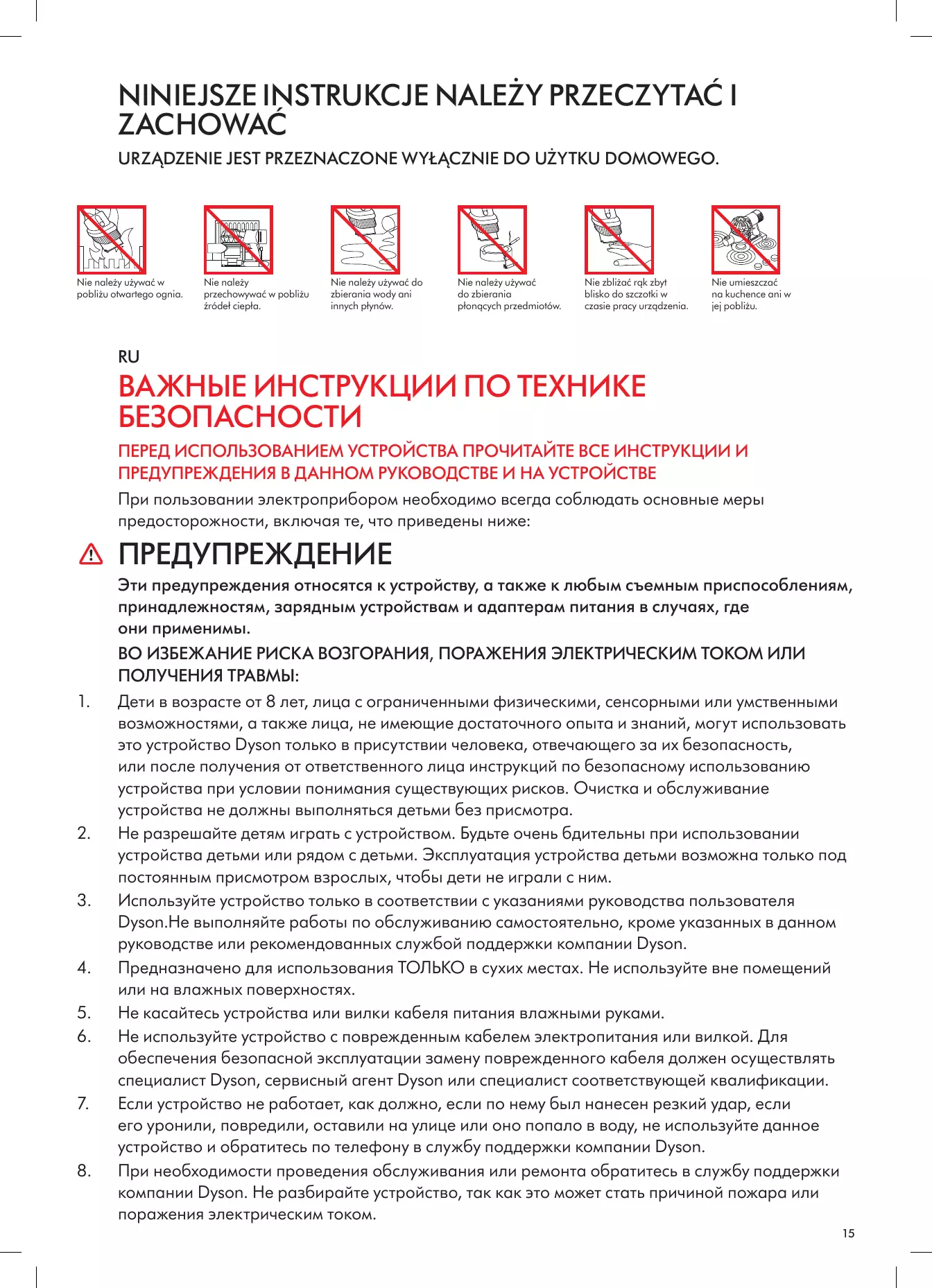 LISEZ ATTENTIVEMENT CES CONSIGNES ET CONSERVEZ-LES CET APPAREIL DYSON EST EXCLUSIVEMENT DESTINÉ À UN USAGE DOMESTIQUE.
