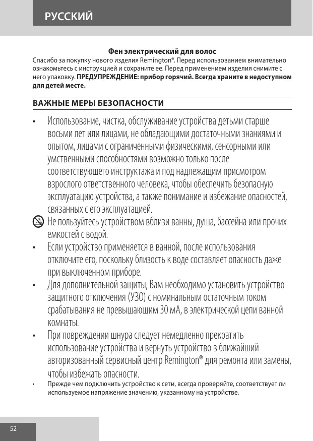 Найдите руководство к устройству бесплатно AC5860 REMINGTON в формате PDF.