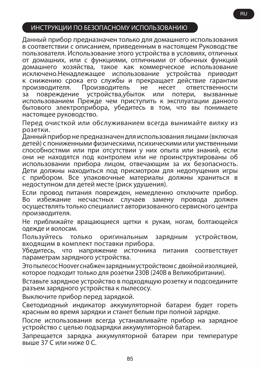 РУКОВОДСТВО ПОЛЬЗОВАТЕЛЯ HF522LHS HOOVER