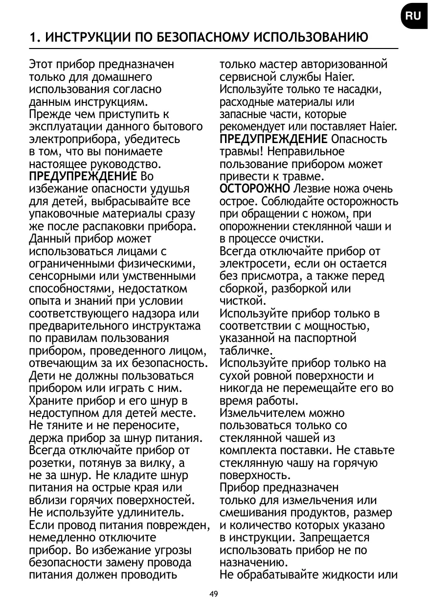 HCH5B1 - Кухонный комбайн HAIER - Бесплатное руководство пользователя