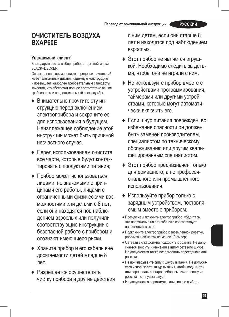РУКОВОДСТВО ПОЛЬЗОВАТЕЛЯ BXAP60E BLACK & DECKER
