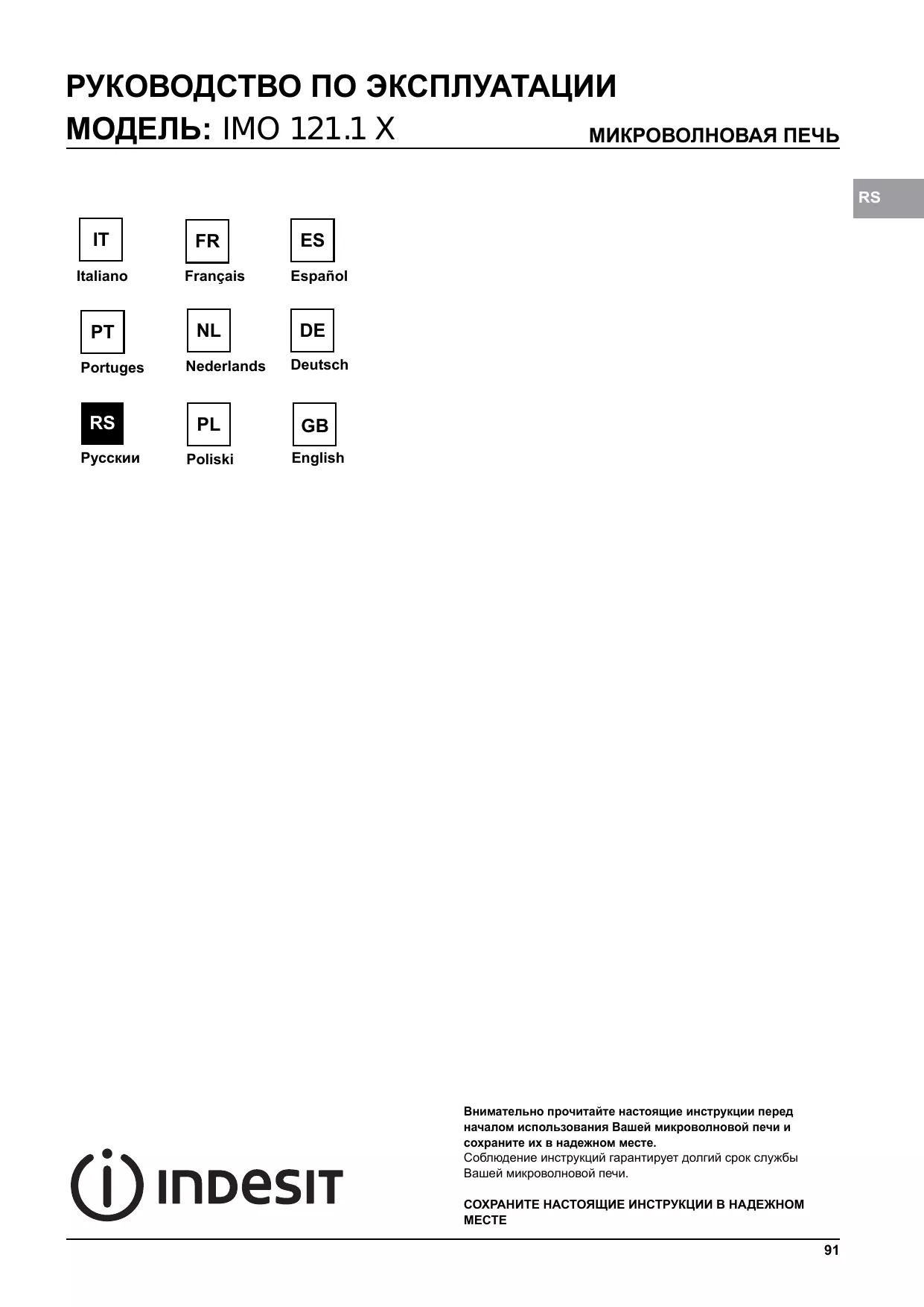 РУКОВОДСТВО ПОЛЬЗОВАТЕЛЯ IMO 121.1X INDESIT