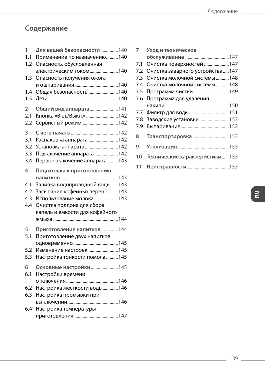 7.1 Nettoyage des surfaces 41 7.2 Nettoyage de la chambre d’extraction 41 7.3 Nettoyage du système de préparation du lait 42 7.4 Nettoyage du groupe lait 42 7.5 Programme de nettoyage 42 7.6 Programme Détartrage 43 7.7 Cartouche filtrante 44 7.8 Réglages par défaut 45 Réglage du rinçage automatique 40 Réglage de la température d’extraction 40