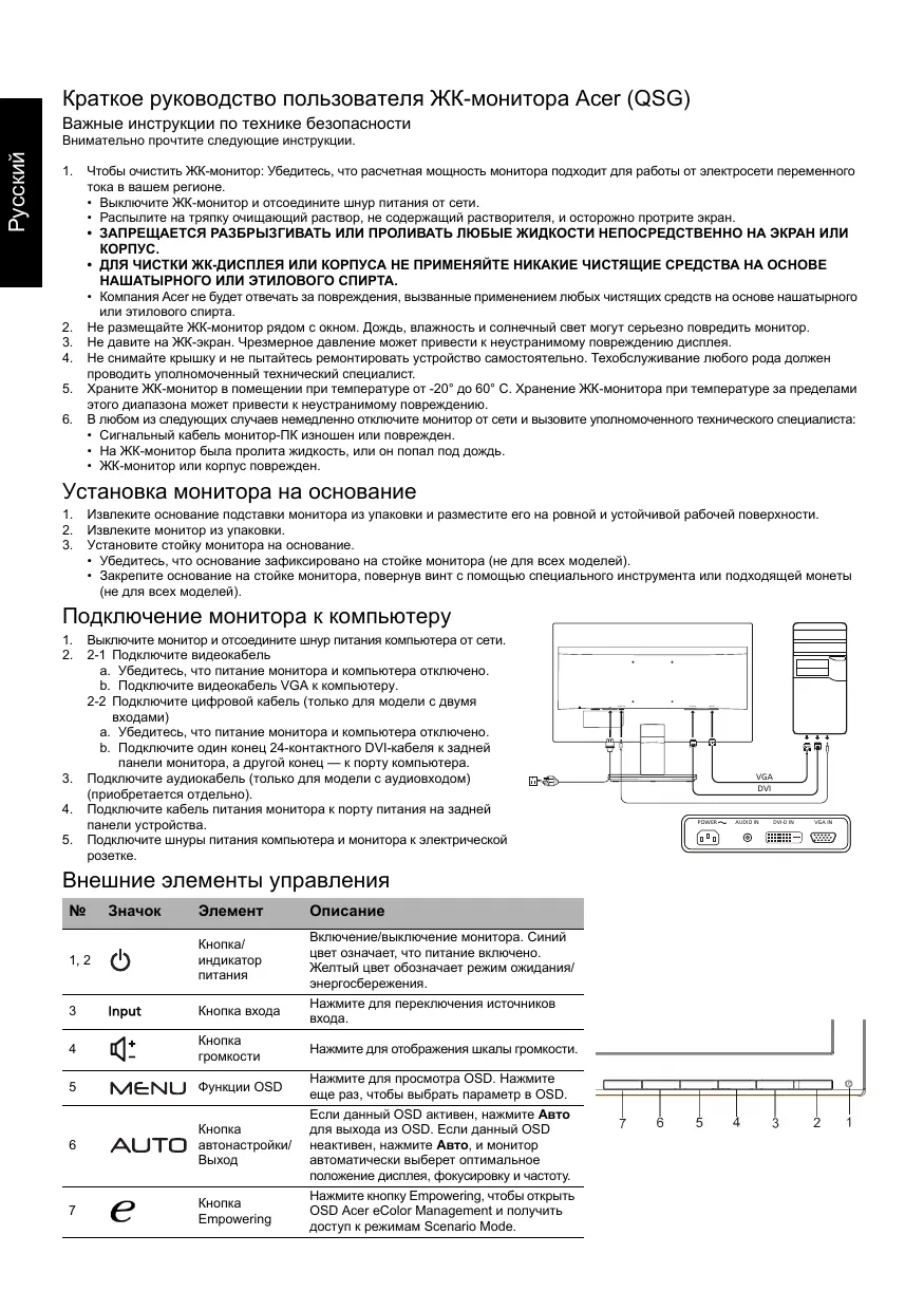 Скачайте инструкцию для вашего Экран в формате PDF бесплатно! Найдите своё руководство VA200HQ - ACER и возьмите своё электронное устройство обратно в руки. На этой странице опубликованы все документы, необходимые для использования вашего устройства. VA200HQ бренда ACER.