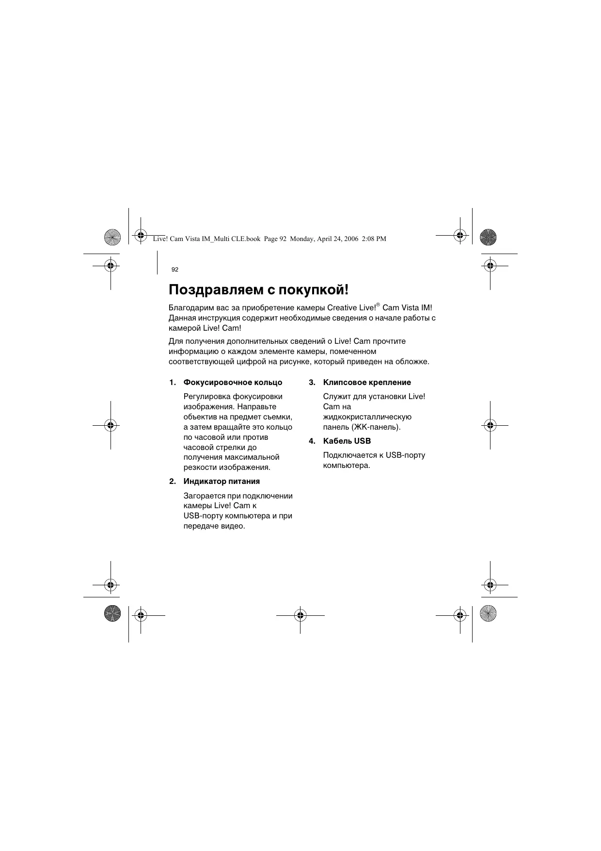 Найдите руководство к устройству бесплатно Live Cam Vista IM CREATIVE в формате PDF.