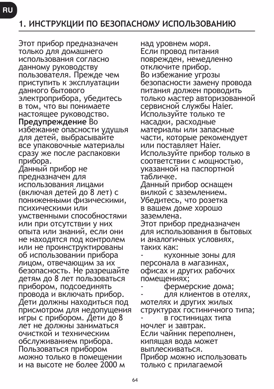 Скачайте инструкцию для вашего Электрический чайник в формате PDF бесплатно! Найдите своё руководство HKESA011 - HAIER и возьмите своё электронное устройство обратно в руки. На этой странице опубликованы все документы, необходимые для использования вашего устройства. HKESA011 бренда HAIER.