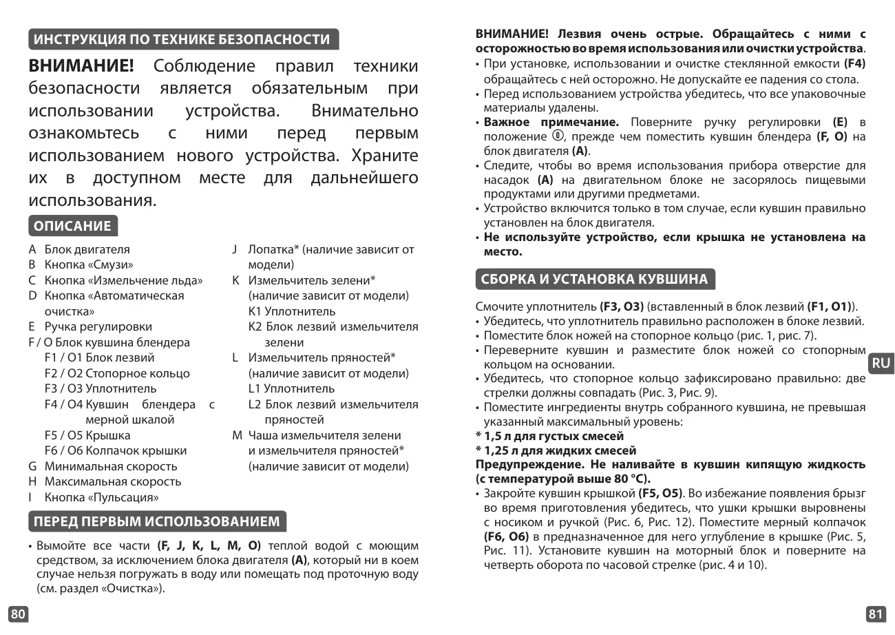 F/ O C onjunto de la jarra de la batidora F1 / O1 Conjunto de las cuchillas F2 / O2 Aro de bloqueo F3 / O3 Junta F4 / O4 Jarra graduada de la batidora F5 / O5 Tapa F6 / O6 Tapón de la tapa G Velocidad mínima H Velocidad máxima I Botón de pulsación