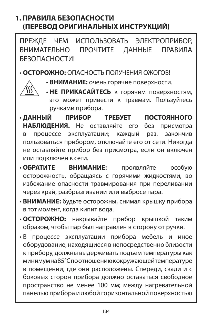 • AVERTISSEMENT : ôter le couvercle avec précaution lorsque l’eau est en ébullition. • ATTENTION : positionner le couvercle de façon à dévier la vapeur de la poignée. • Toute pièce de mobilier adjacente doit pouvoir résister à une augmentation de température d’au moins 85 °C au-dessus de la température ambiante de la pièce où se trouve l’appareil durant son utilisation. L’espace autour de l’appareil doit être dégagé de 100 mm à l’avant, à l’arrière et sur les côtés de l’appareil et de 700 mm entre la plaque de cuisson et le côté inférieur de toute surface horizontale située au-dessus de l’appareil. Certains meubles de cuisine en vinyle ou en stratifié sont particulièrement sensibles aux dommages dus à la chaleur ou aux décolorations dues à des températures élevées, même inférieures aux directives susmentionnées. Tout dommage découlant d’une installation de l’appareil 1