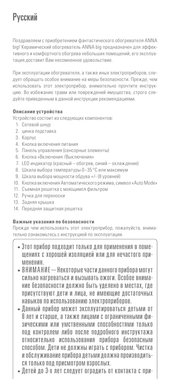 РУКОВОДСТВО ПОЛЬЗОВАТЕЛЯ BIG BLANC ANNA