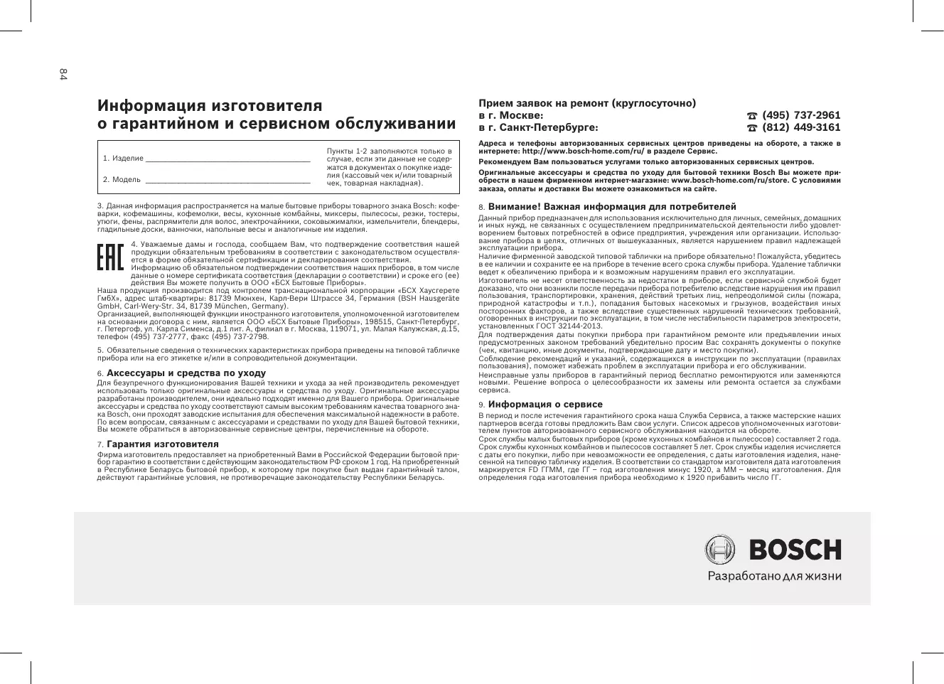 РУКОВОДСТВО ПОЛЬЗОВАТЕЛЯ BHN09070 BOSCH