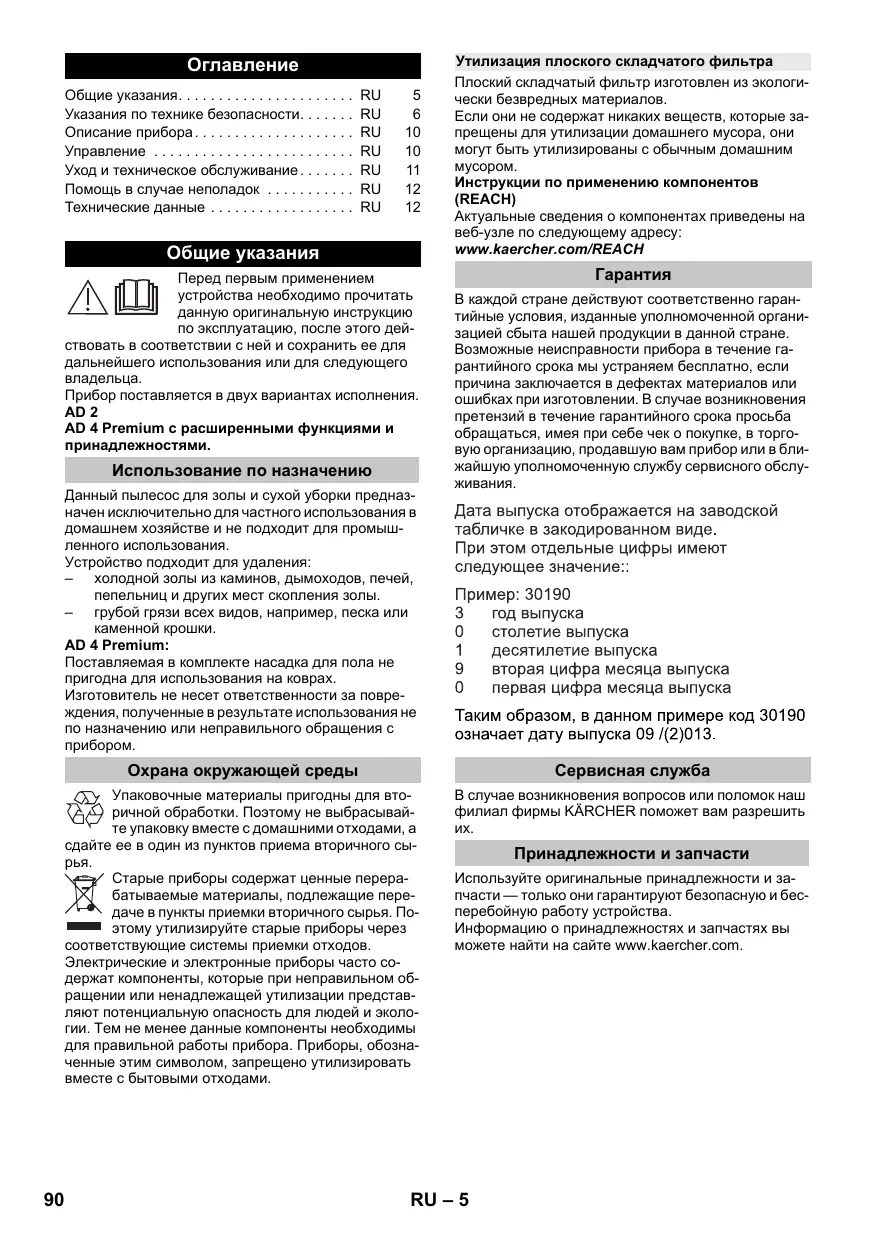 Найдите руководство к устройству бесплатно AD2 KARCHER в формате PDF.