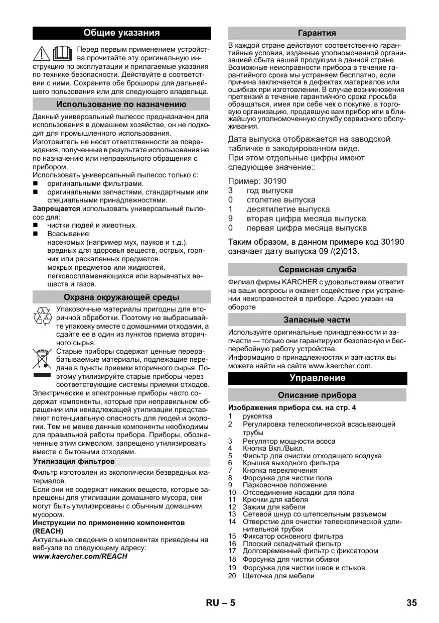 Найдите руководство к устройству бесплатно VC5 KARCHER в формате PDF.