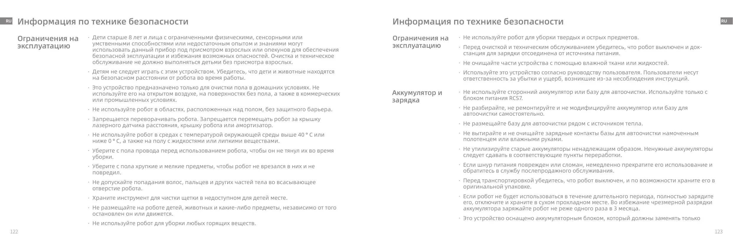 - N'utilisez pas de batterie, de chargeur ou de base auto-videuse tiers. N'utiliser que l'unité d'approvisionnement RCS7.