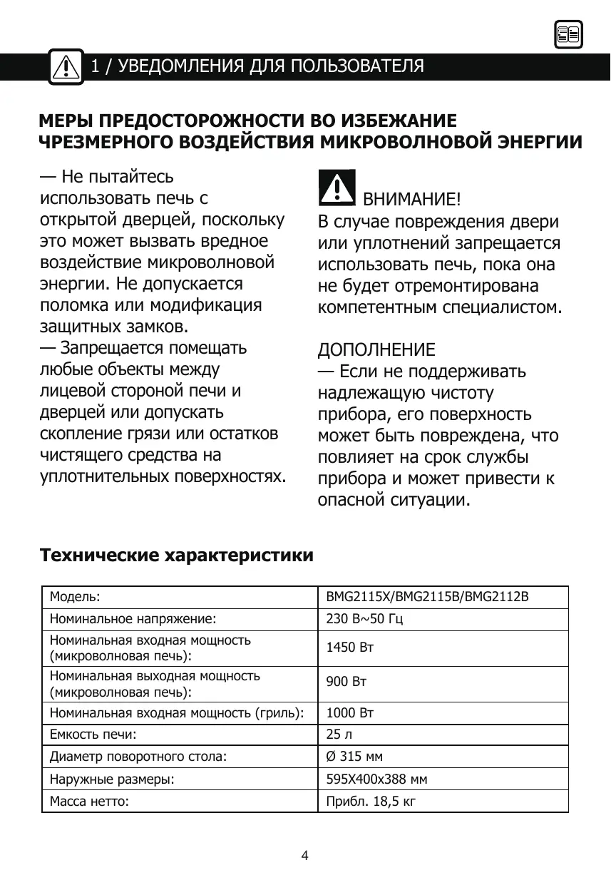 РУКОВОДСТВО ПОЛЬЗОВАТЕЛЯ BMG2115B BRANDT